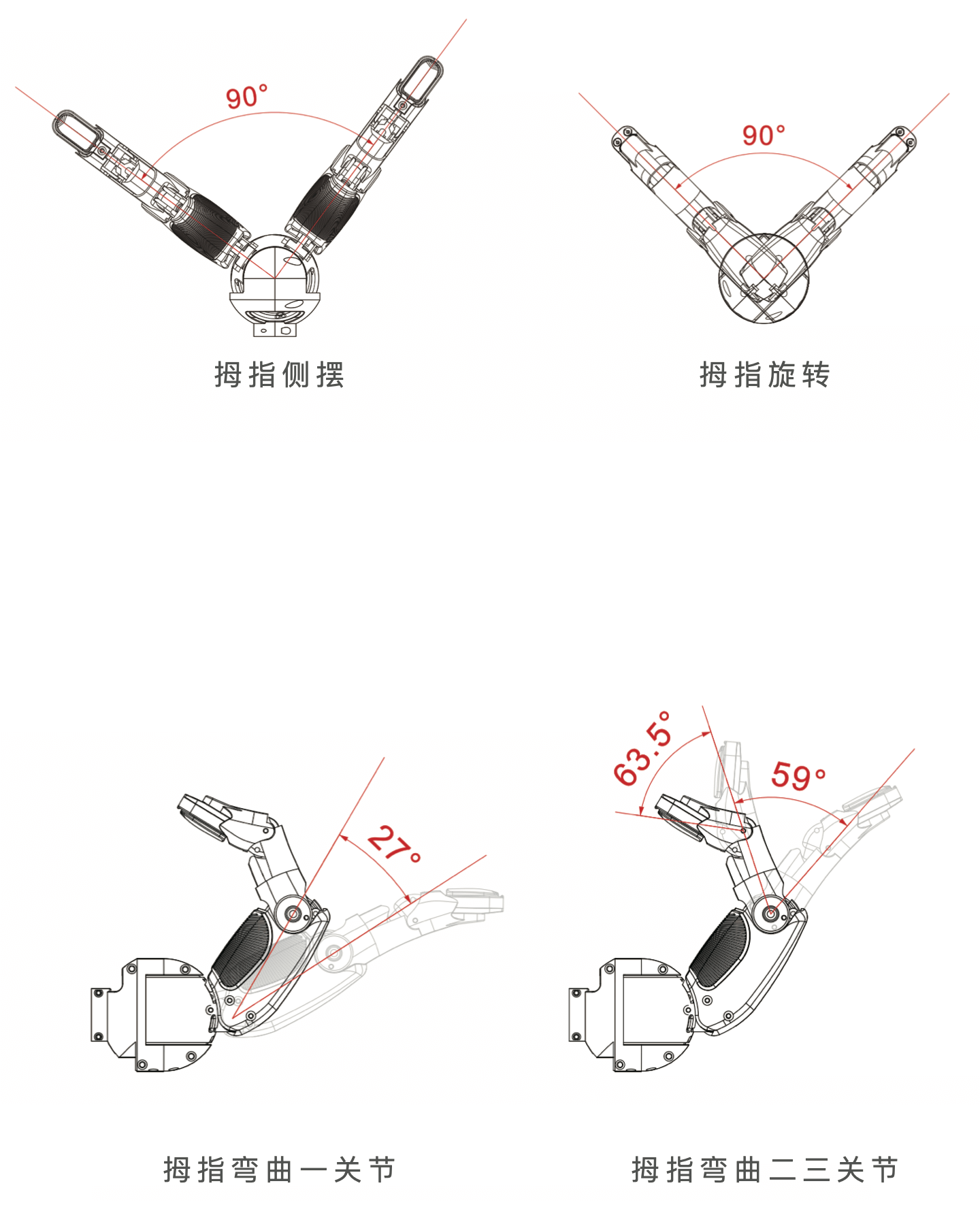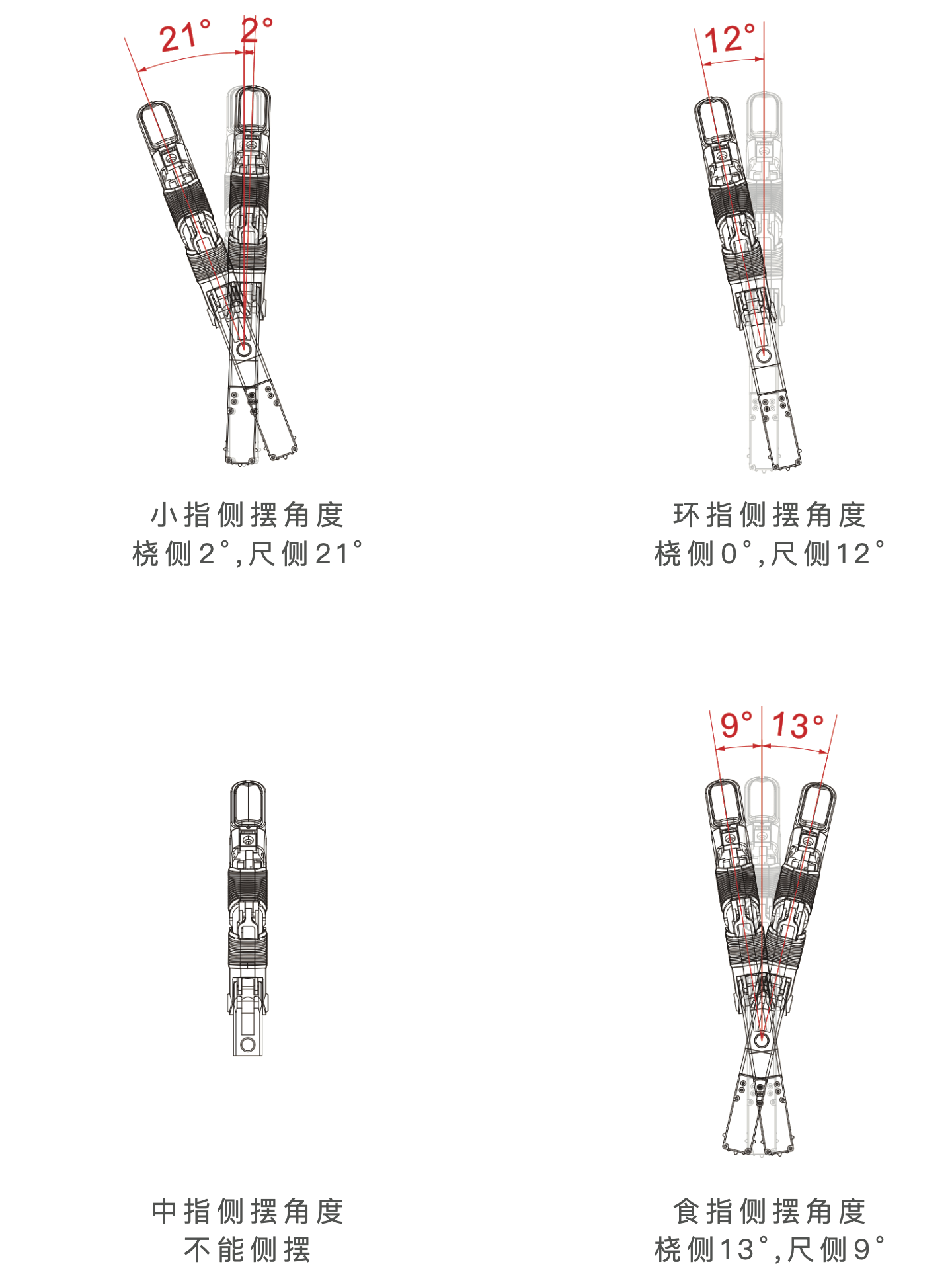 | 拇指侧摆速度 | 2.35rad/s(135°/s) |