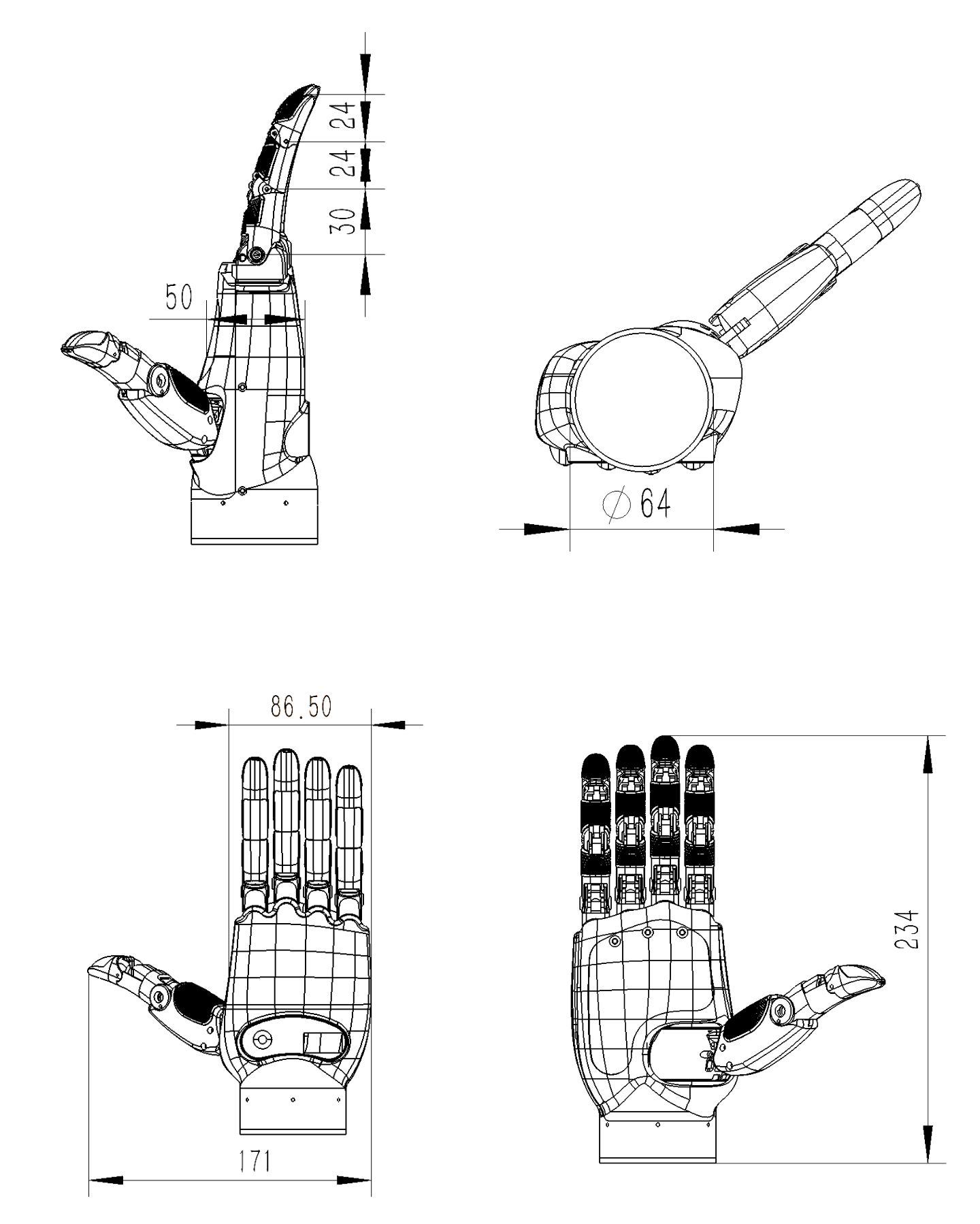 | 四指弯曲速度 | 2.6rad/s(150°/s) |